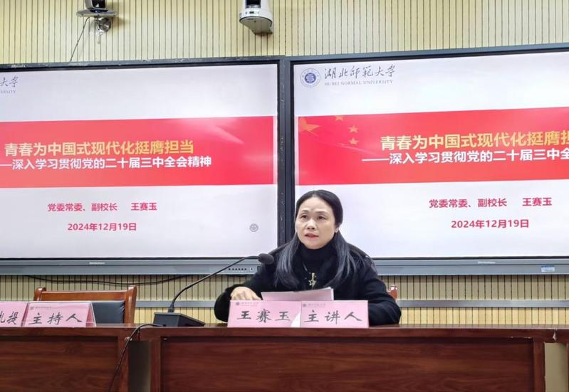 本网讯 为深入学习贯彻党的二十届三中全会精神,扎实推进学生党建工作,12月19日下午,校党委常委、副校长王赛玉参加教育科学学院学生第一党支部主题党日活动,并讲授学习贯彻党的二十届三中全会精神专题党课。教育科学学院学生第一党支部全体党员参加活动。教育科学学院领导班子成员、学生党支部书记列席活动。活动由教育科学学院学生第一党支部书记伊力扎提主持。
